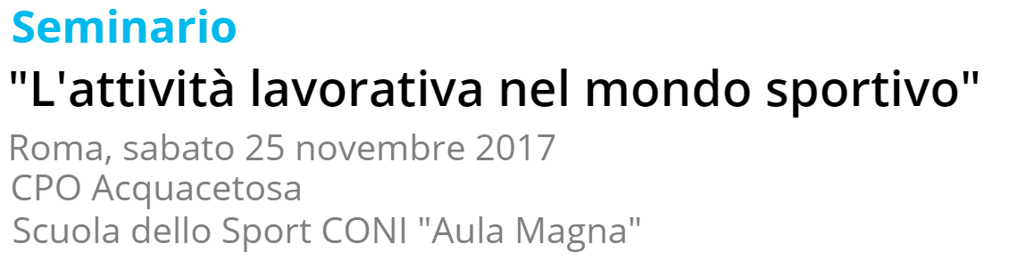 MSP Roma, dopo la positiva esperienza dell’aprile scorso con il seminario di studio sugli aspetti amministrativi-contabili per le ASD e SSD, per la nuova stagione sportiva e nel proseguo del programma di promozione e assistenza rivolto alle Associazioni/Società Sportive, agli Istruttori, ai Maestri e quanti collaborano e lavorano nel mondo sportivo, organizzerà, il giorno 25 novembre 2017 presso l’Aula Magna della Scuola dello Sport del Coni (Largo Giulio Onesti 1) dalle ore 8.30 alle ore 13, il Seminario gratuito sull’attività lavorativa nel mondo sportivo.